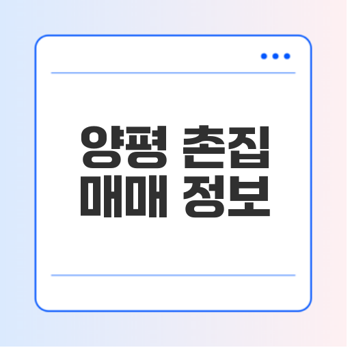 양평에서 촌집을 고려하고 계신다면, 이러한 기본 조건과 시장 흐름을 반영하여 투자나 거주 계획을 세우시길 바랍니다. 필요한 추가 정보가 있다면 언제든지 문의 주시기 바랍니다.